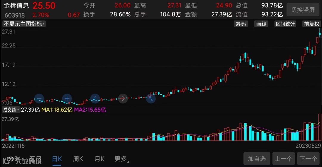 就是A股年内AI概念股中又一只大牛股金桥信息(603918.sh),近期AI概念在经过前期的调整之后又开始冲高,多只年内大牛股再创新高。