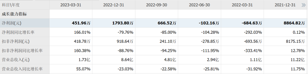 据金桥信息财报数据显示,2022年营收8.64亿、同比下滑23.03%,实现归母净利润1793.80万、同比下滑79.76%,实现扣非净利润918.64万、同比下滑88.76%;2023年一季度,营收1.73亿、同比增长55.07%,实现归母净利润451.96万、同比增长166.01%,实现扣非净利润418.78万、同比增长160.38%。