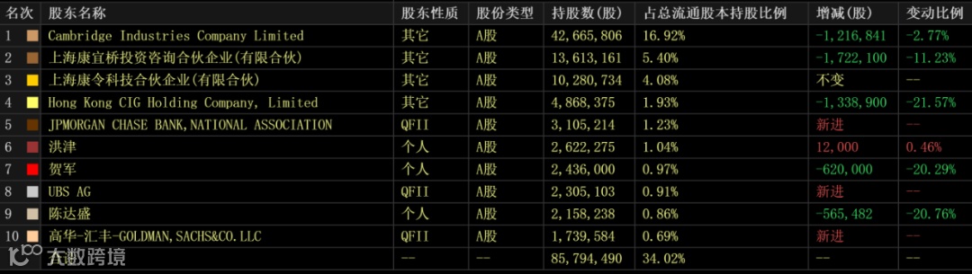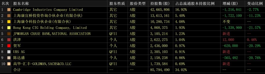 根据现有的十大股东名单,可以看到CIG开曼是第一大流通股东,康宜桥是第二大流通股东。
