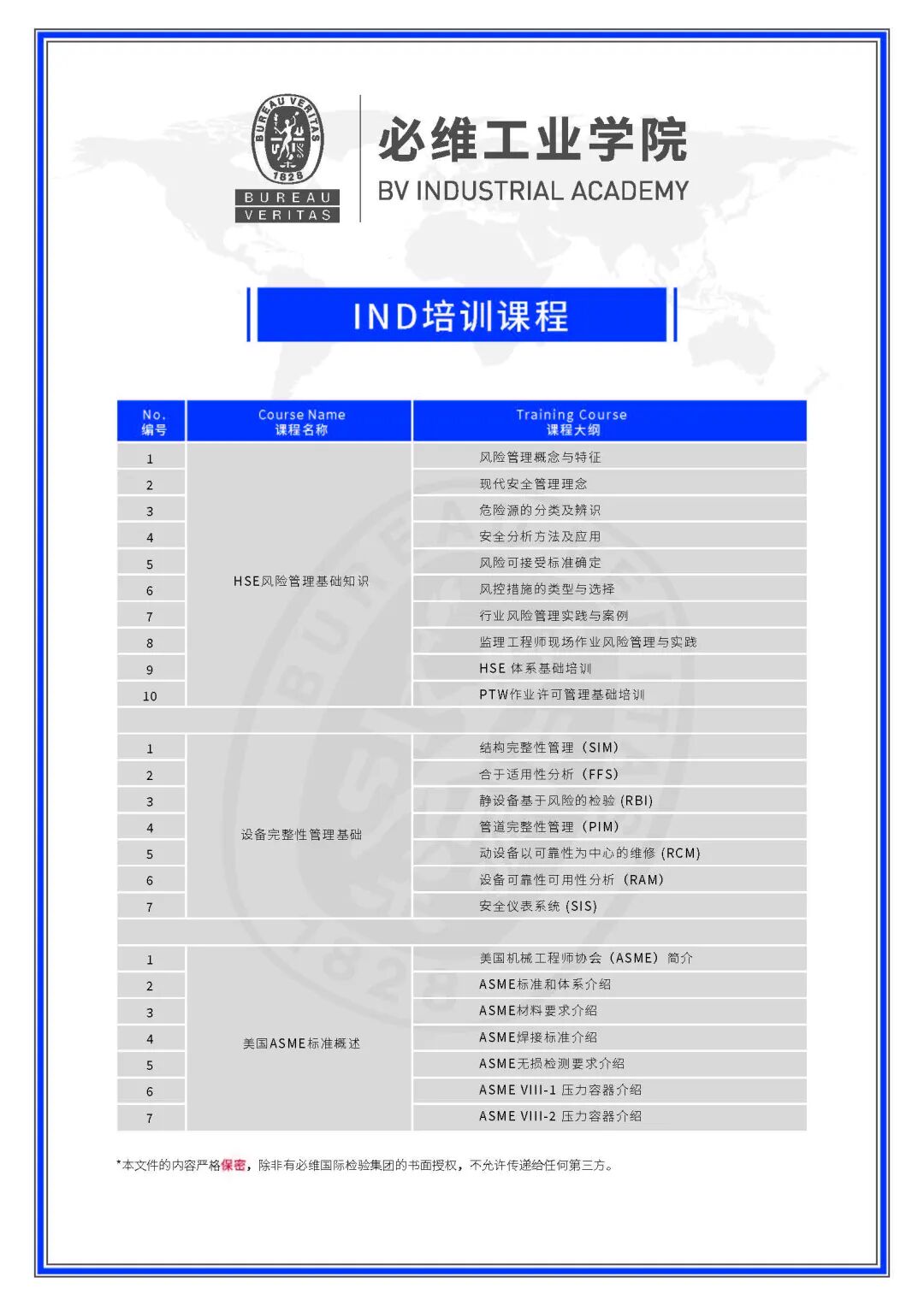 必维集团为中石油、中石化、中海油、中国管网、壳牌、道达尔、雪佛龙等国内外知名企业提供设备完整性服务。必维集团将以工业学院作为平台,以专业化课程为培训体系,以工业前沿视角助力工业人才茁壮成长,为中国乃至全球工业领域的蓬勃发展注入强劲动力。我们坚信,通过教育与实践的相结合,能够有效激发人才的无限潜能,携手共同迈向更加繁荣的未来。