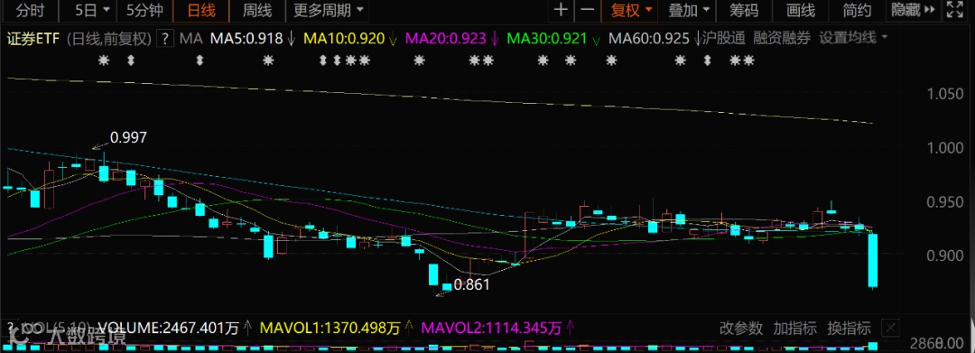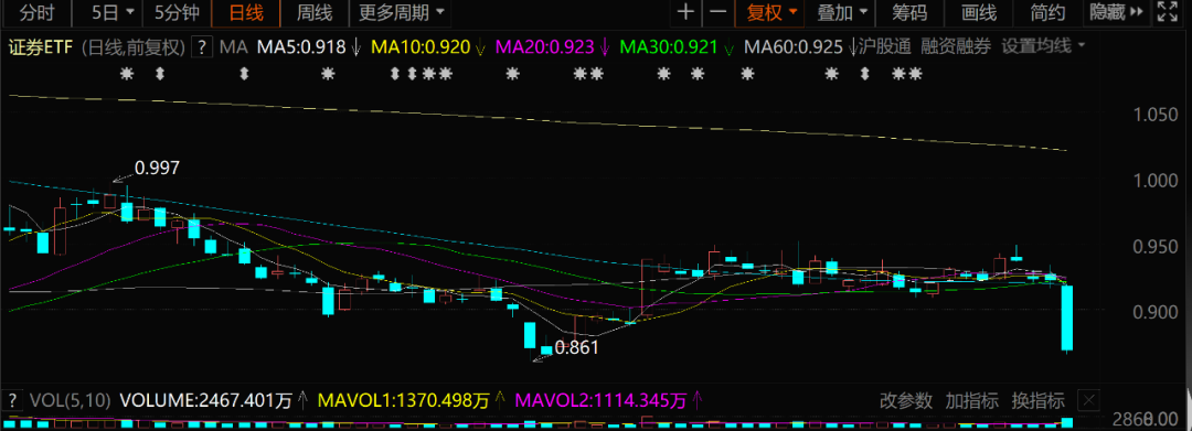 作为股票软件“难兄难弟”的券商板块,也是泥沙俱下,截至收盘,证券ETF下跌5.75%。