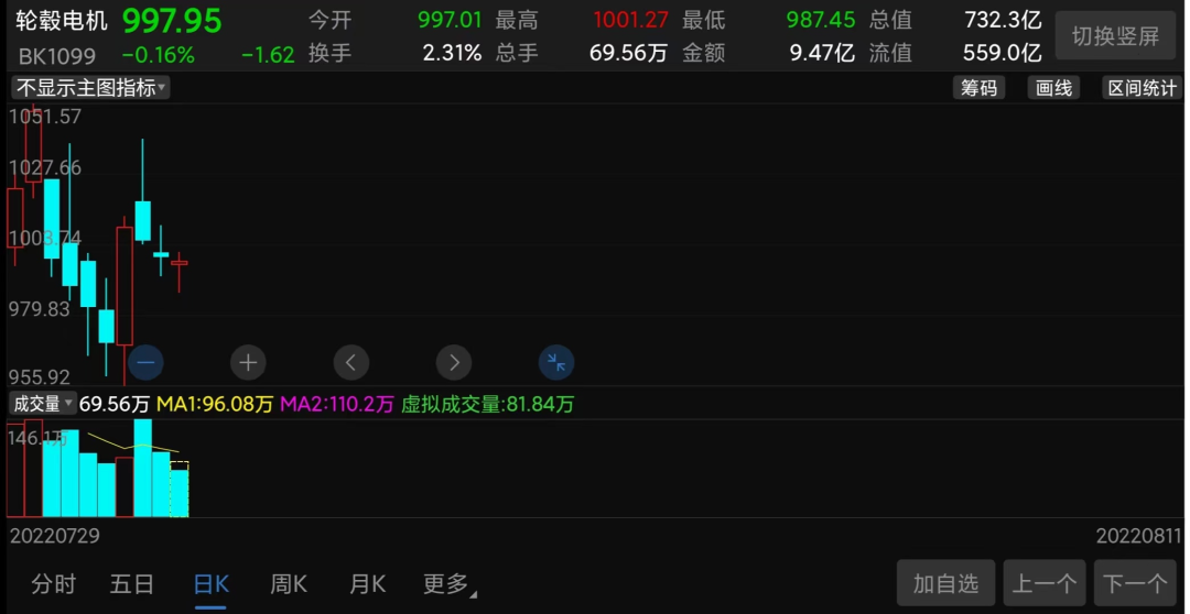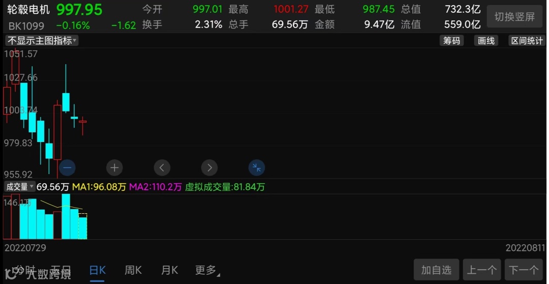 7月29日东方财富软件首次出现“轮毂电机”这一概念指数,两天板块就大涨超5%,不过疯狂仅两天之后就陷入了震荡回调格局,可能还是这个概念不够吸引人,但截至今天该板块总市值已超730亿。