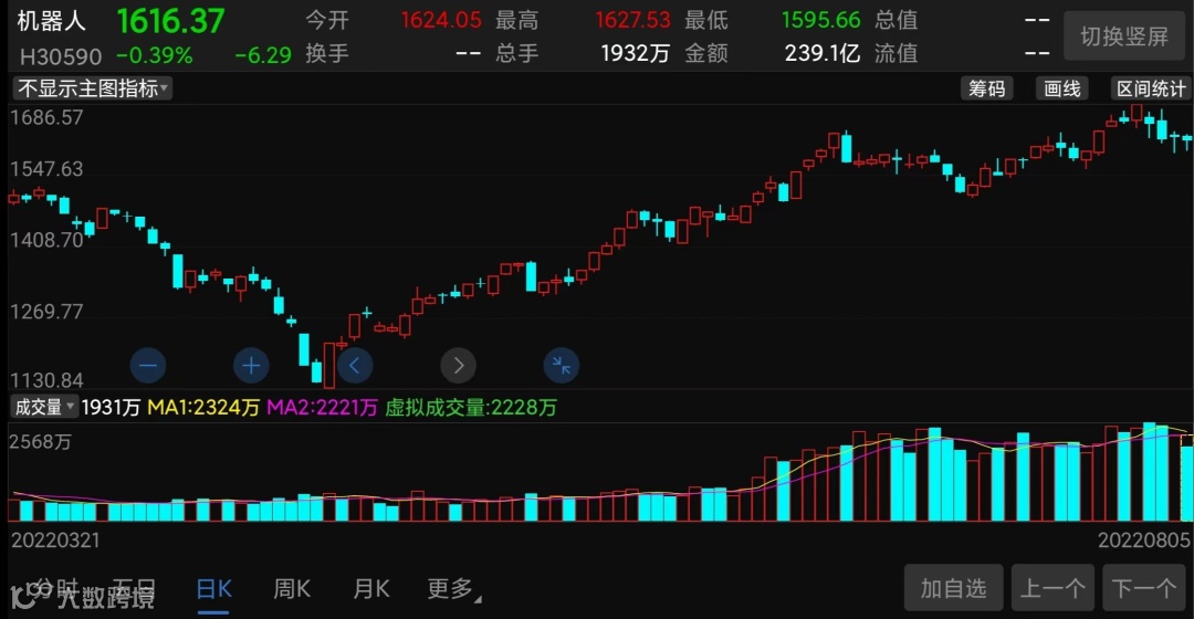 近一个月机器人相关概念股涨幅巨大,中大力德(002896.sz)大涨超113%、鸣志电器(603728.sh)大涨超90%、江苏北人(688218.sh)大涨超89%、智立方(301312.sz)大涨超89%、汉宇集团(300403.sz)大涨超54%……