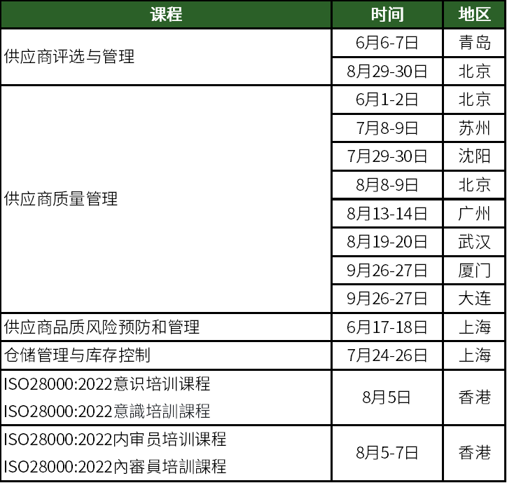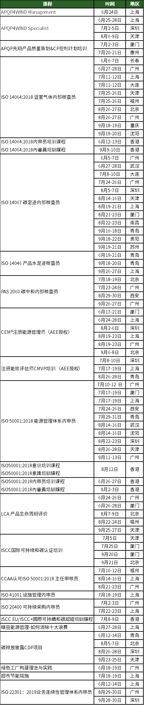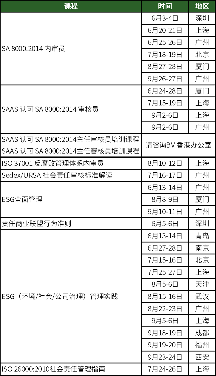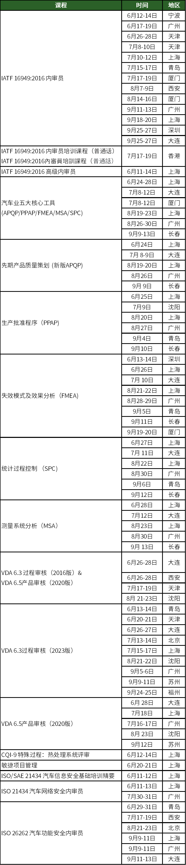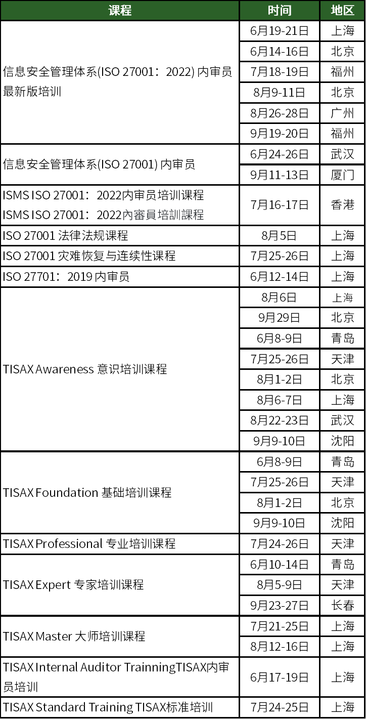 注:最终的开课情况会根据学员实际报名而调整,请提前联系必维各区域联系人。