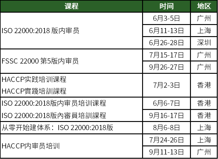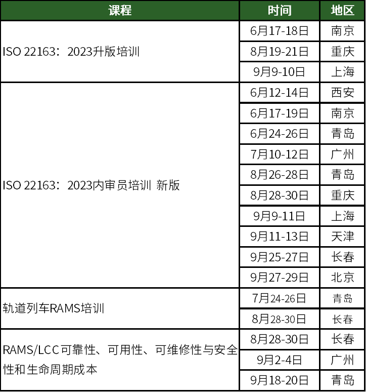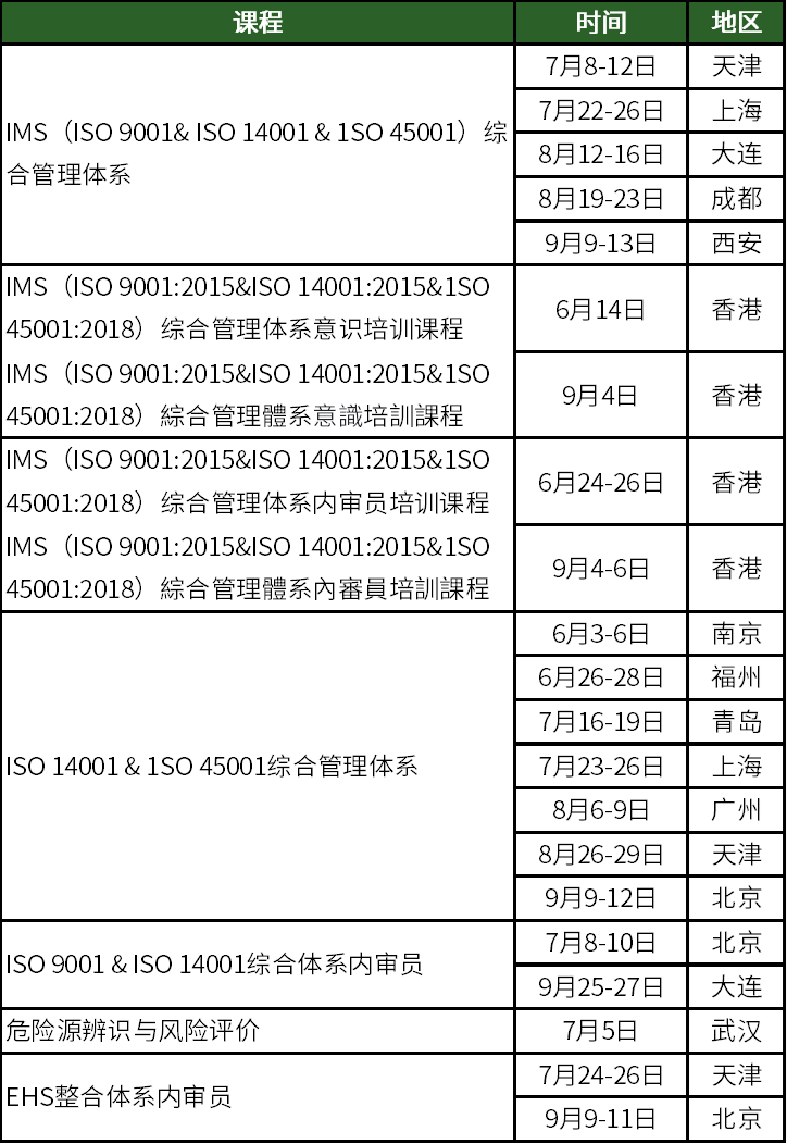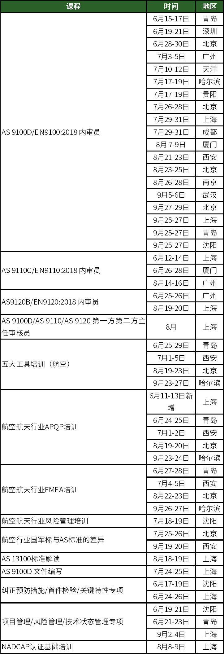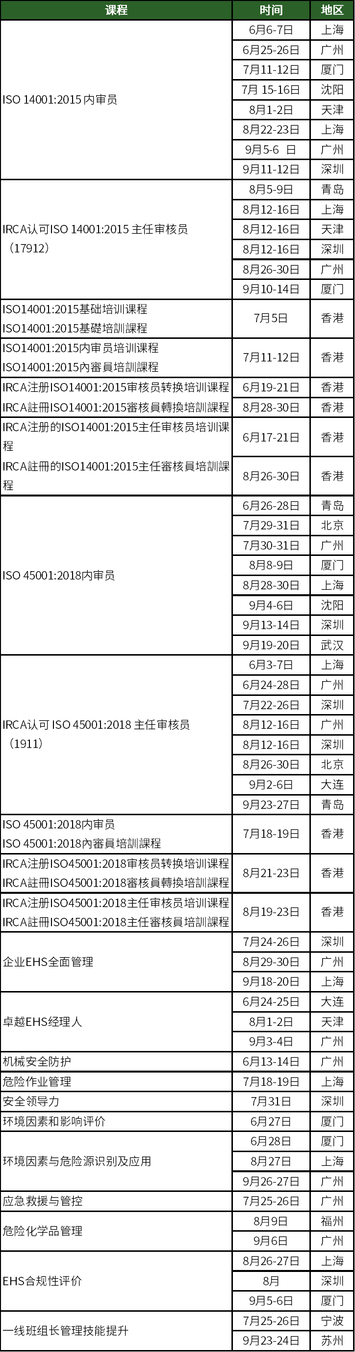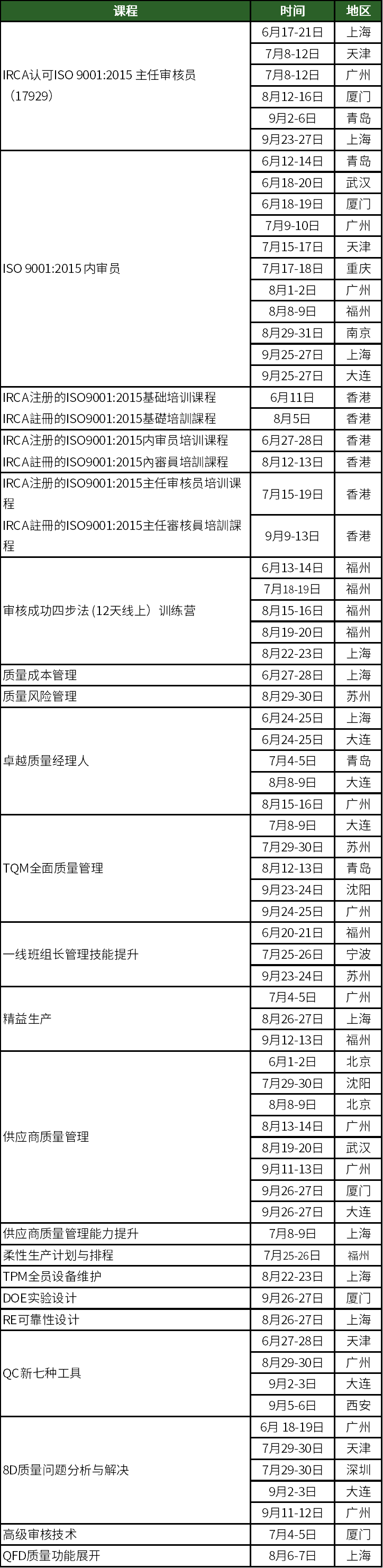 注:最终的开课情况会根据学员实际报名而调整,请提前联系必维各区域联系人。