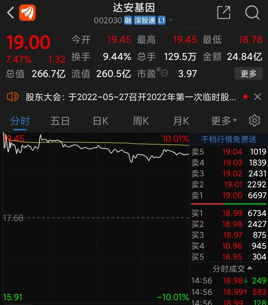 受猴痘病例在全球多个非流行地区出现影响,A股投资者在周末的时候就早早的选出了一批又一批的概念股,其中主营荧光PCR检测的达安基因(002030.sz)关注度飙升,今天直接涨停开盘,不过盘中逐渐回落。