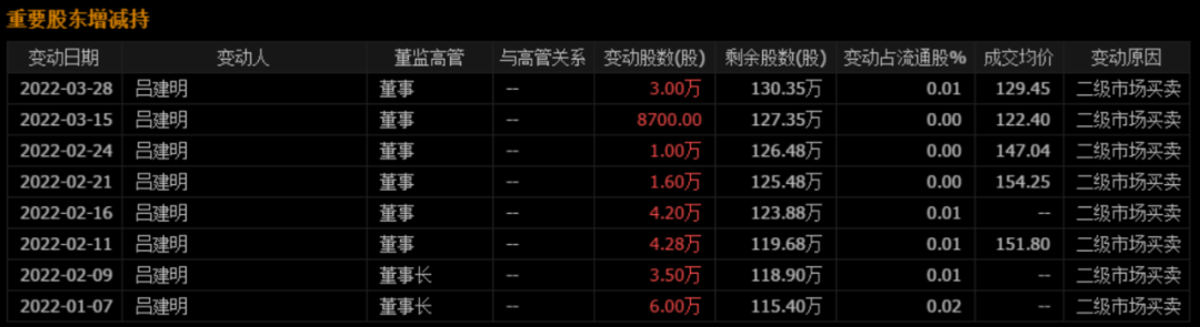 不过,随着公司股价的一路下跌,董事长吕建明更是多次增持公司股票,今年以来已经累计增持24.45万股,但公司股价年内还是大跌超38%。