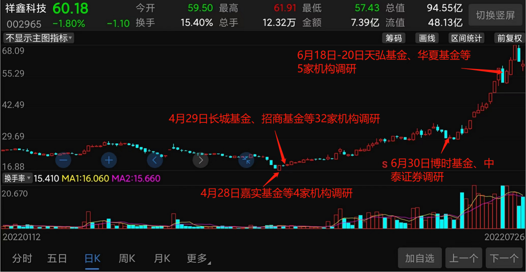 如果把这些机构调研的时间和祥鑫科技股价走势结合起来看,可以说祥鑫科技的股价就是在这些机构的不断调研中一路涨上来的。