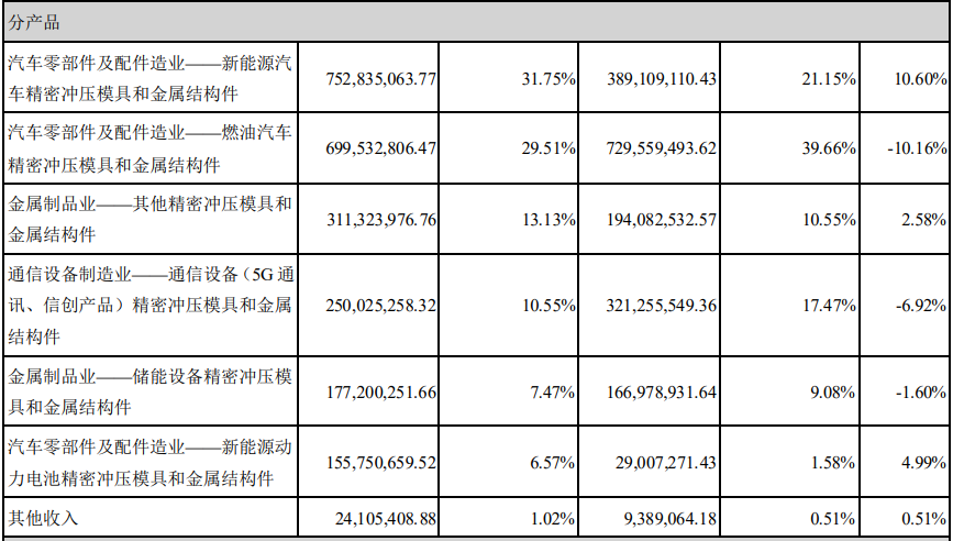 据公司财报披露,在智能汽车领域,公司已向华为、德赛西威(002920.sz)、小马智行等企业提供智能网联、车载充电、智能驾驶、智能座舱等模块产品;在新能源汽车领域,已向宁德时代、广汽埃安、吉利汽车、比亚迪、亿纬锂能、国轩高科、孚能科技等提供动力电池箱体等产品;在储能与光伏领域,已向华为、阳光电源、宁德时代、亿纬锂能等提供光伏逆变器、储能机柜等产品;在通信领域,已向华为、中兴、长城、浪潮、烽火等提供基站金属结构件、IDC机箱等产品。