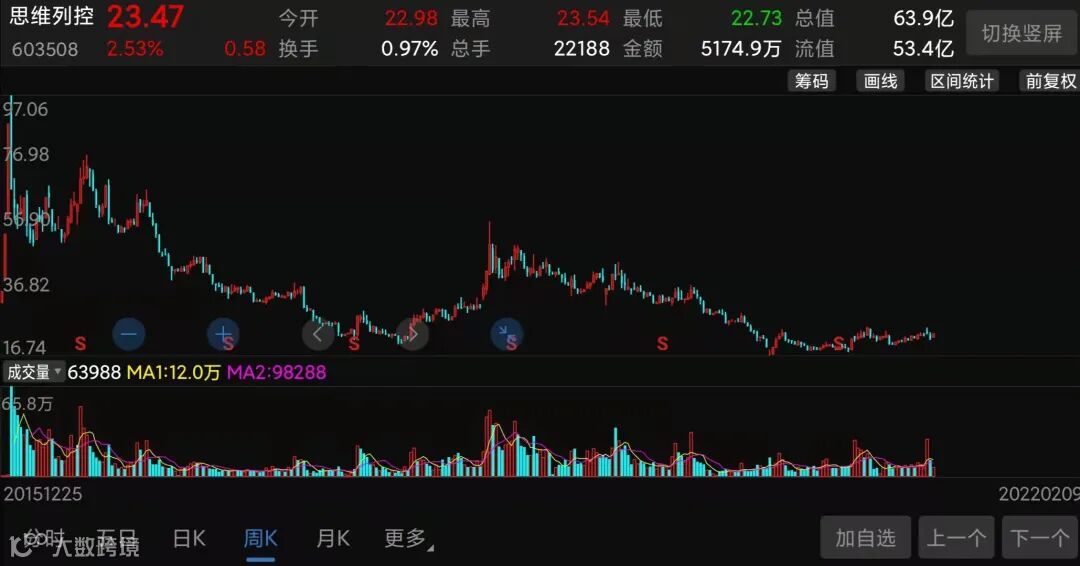 远望谷投资思维列控的成绩如何,大家看一下思维列控上市以来的股价就知道了,整体一路下跌,到2018年1月底正式破发。
