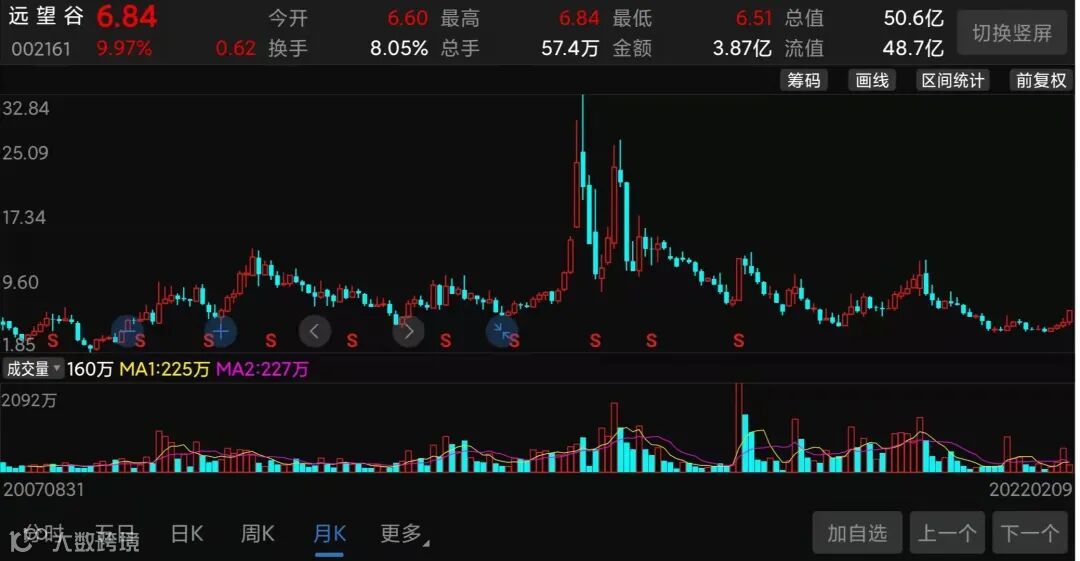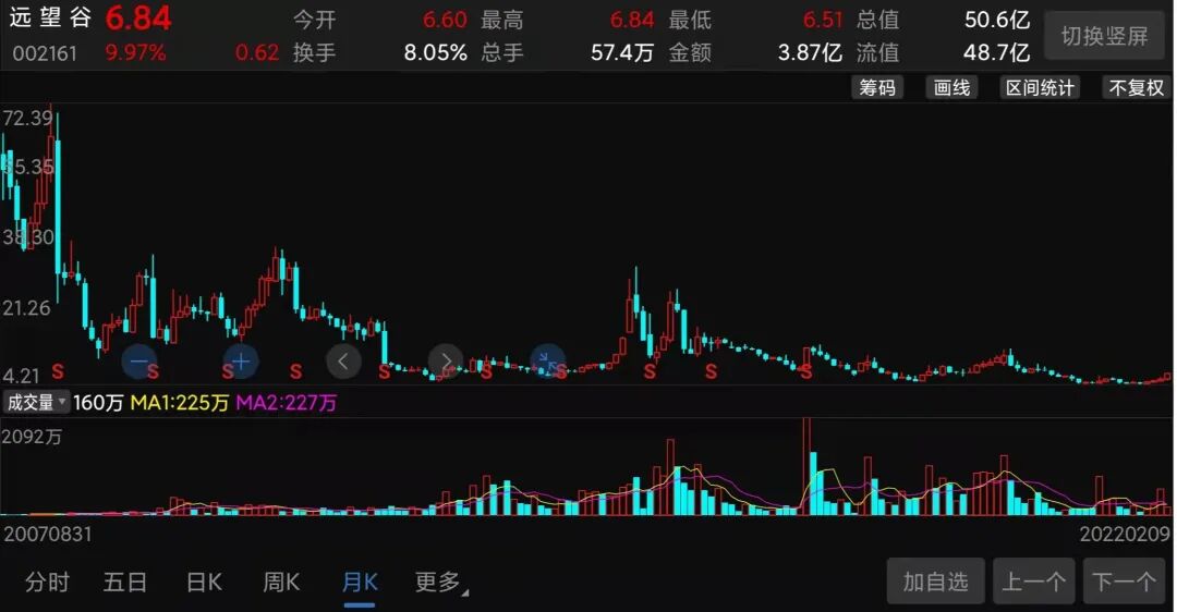 总的看来,远望谷这家公司虽然早早卡位物联网的关键领域,奈何创始人、实控人、管理层无心经营,最终走上不务正业的邪路,导致公司收入、业绩持续下滑,在实控人内幕交易之后二级市场股价更是暴跌近9成,现在又凭一句有得没得的“远远望着谷爱凌”蹭上谷爱凌的热度连续涨停。