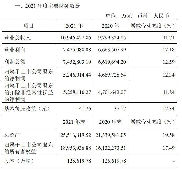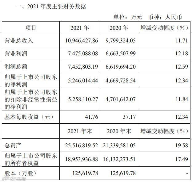 2021年,公司营业收入662.09亿元,同比增长15.51%;净利润233.77亿元,同比增长17.15%;扣非后净利润233.28亿元,同比增长16.67%。
