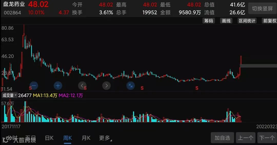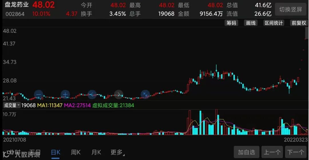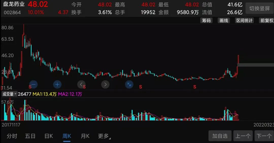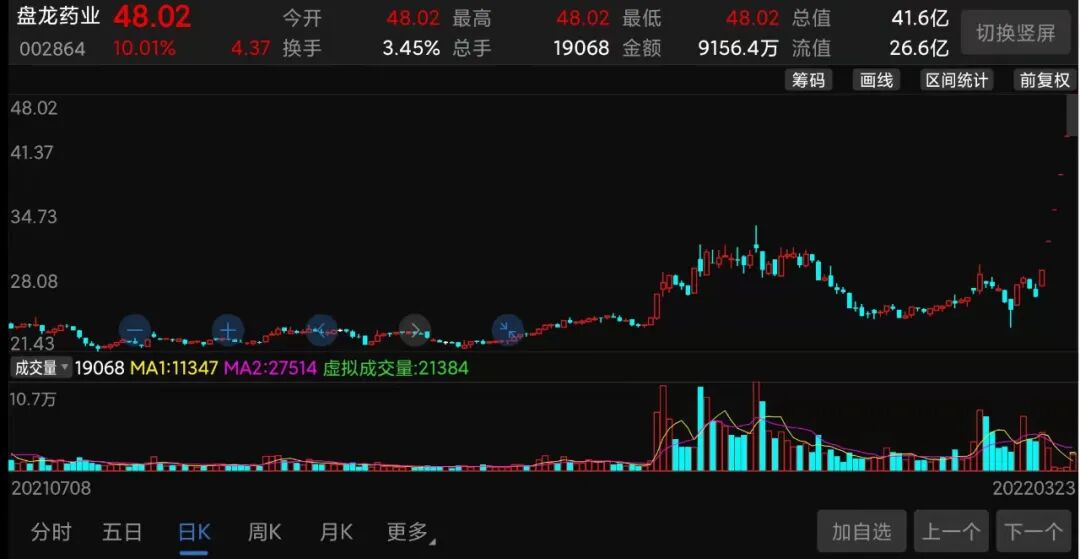 (盘龙药业股价走势截图)