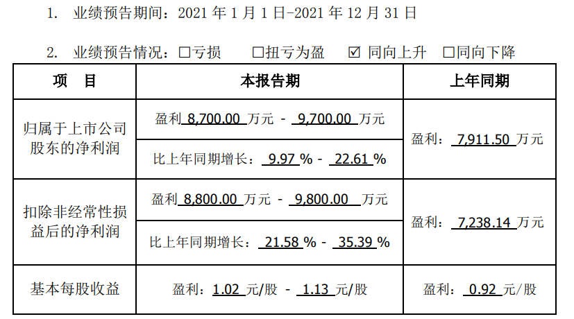 公司业绩也仅仅从2017年的4371.90万增长到2020年的7911.50万,增长幅度不足一倍。今年一月公司发布的2021年业绩预告也相对平稳,归母净利润8700万-9700万、同比增长9.97%-22.61%,扣非净利润8800万-9800万、同比增长21.58%-35.39%。