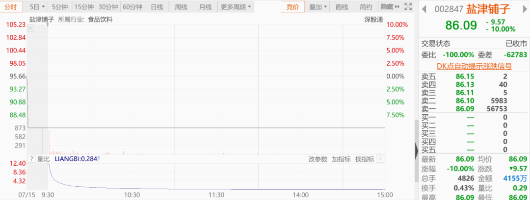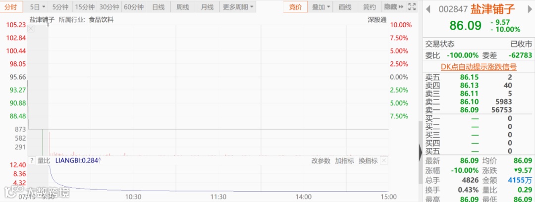 7月15日,与盐津铺子一起跌停的食品股还有克明食品(002661.SZ)。