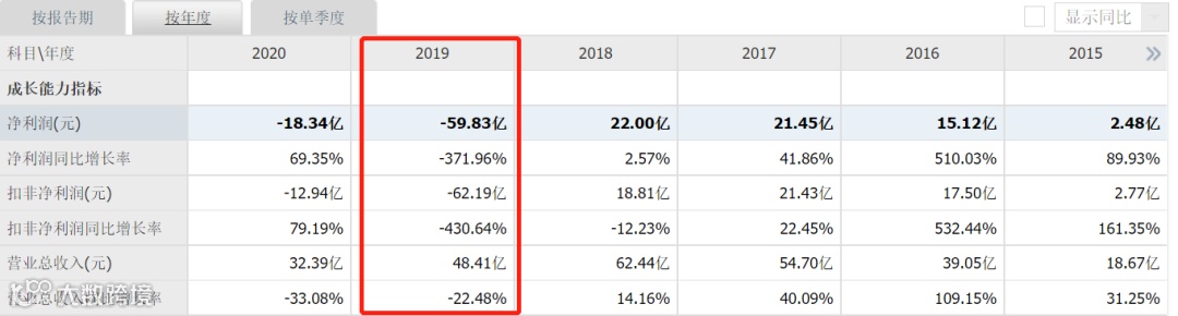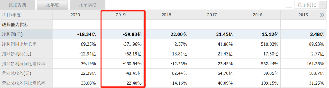 巨额的资产减值让公司当年巨亏59.83亿,同比暴跌371.96%。