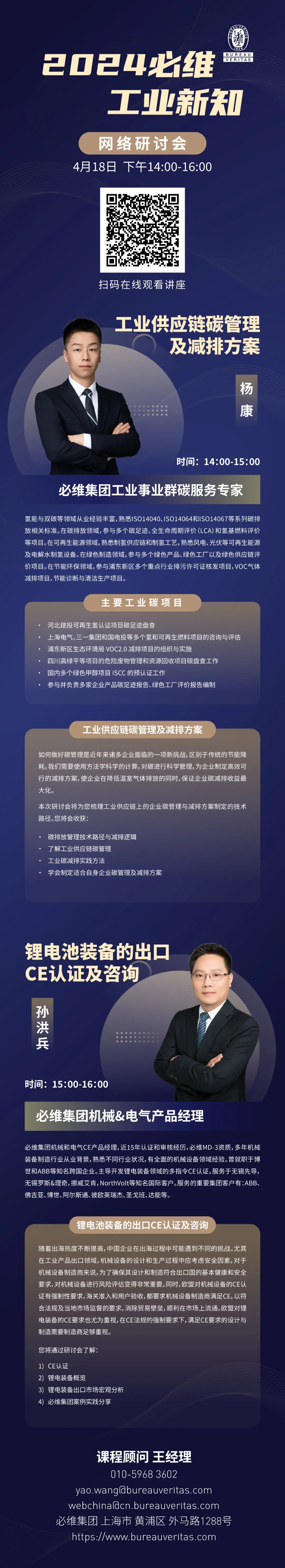 必维“工业新知”网络研讨会本周四起航——聚焦《工业供应链碳管理》及《锂电池装备出口CE认证及咨询》