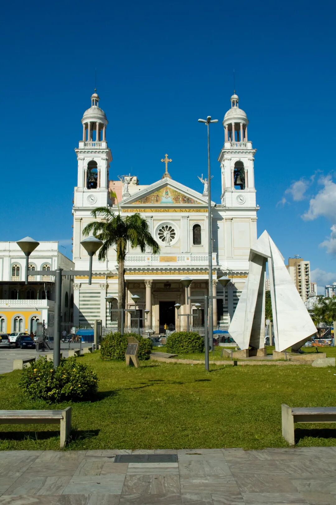 欧洲文化对贝伦的影响也凝聚在那些教堂上,通体洁白的拿撒勒大教堂始建于1909年,又被称为“纳扎莱教堂”、“纳萨雷圣母教堂”,新古典主义和巴洛克风格赋予了它别样的静谧感,精美的内饰、壁画无一不在诉说着它的圣洁。