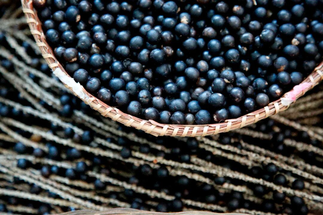 阿萨伊(巴西莓),一种在亚马孙地区生长的果实,热带雨林气候为它的生长提供了有利条件,形似蓝莓一般小巧圆润、混合着莓果、桑葚的果香的阿萨伊在贝伦当地特别受欢迎,不仅因为其营养丰富,更是搭配广泛,炸鱼、沙拉是它的常见搭档,做成果汁、甜点风味更是独特。