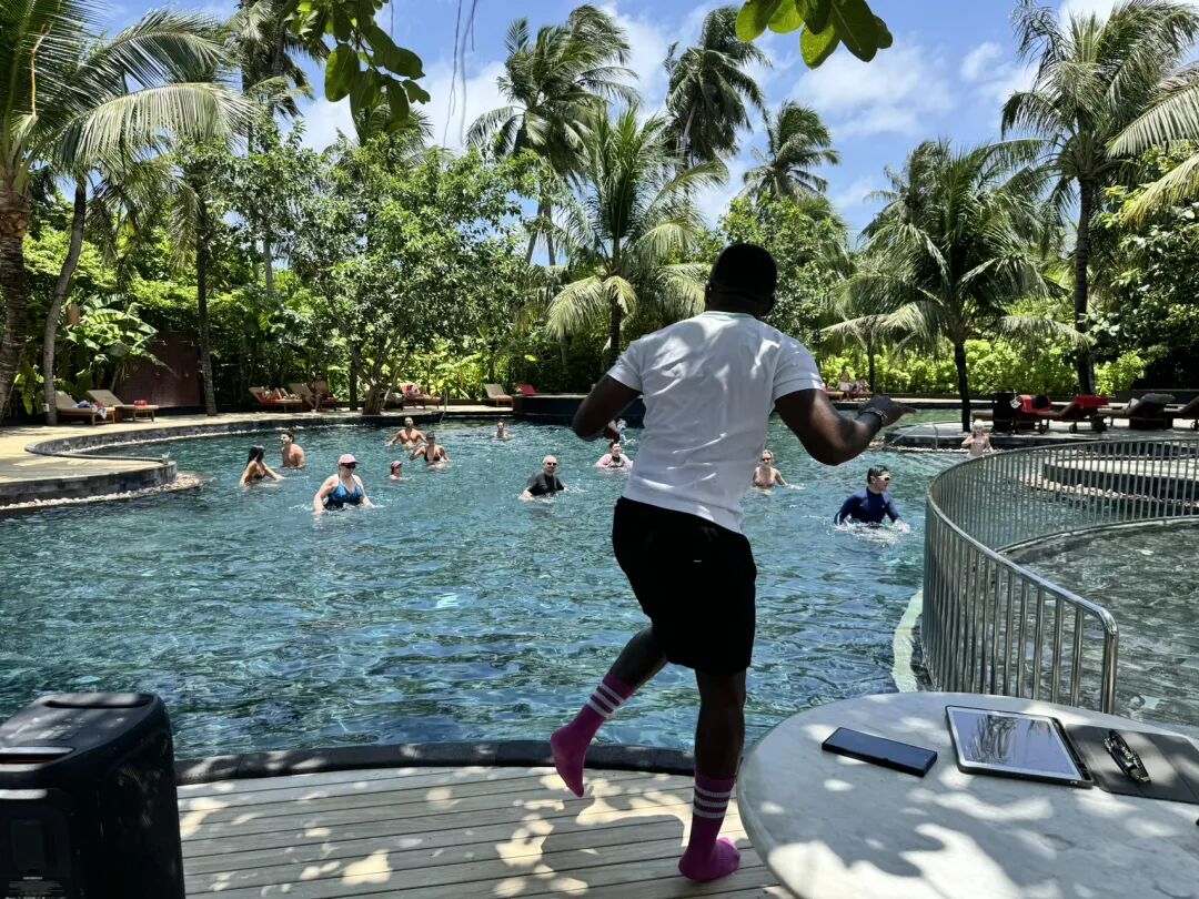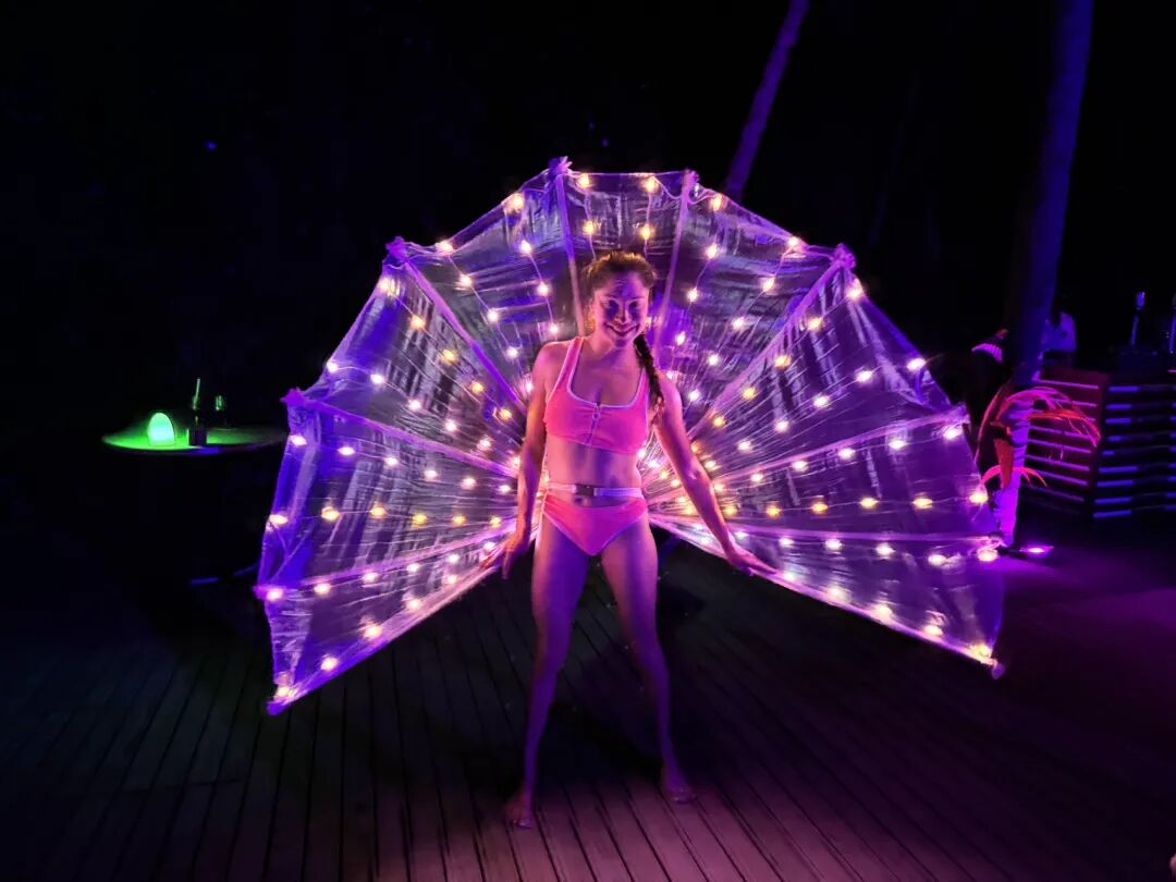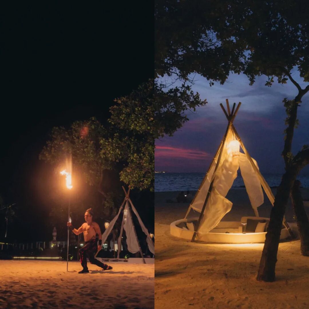 晚上的活动更是精彩万分,火舞表演、泳池DJ派对、蹦迪、杂技秀、看电影轮番上演,把邮轮那套直接搬到岛上。