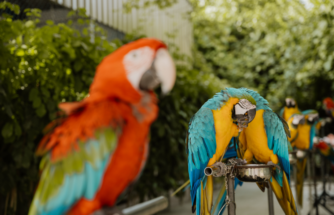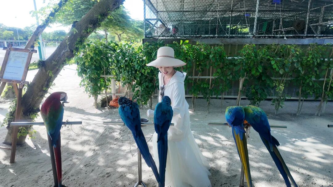 禧亚世嘉有属于自己的小型动物园,有各种颜色鲜艳的鹦鹉,小羊、珍珠鸡、孔雀,还有随地大小躺的猫猫。