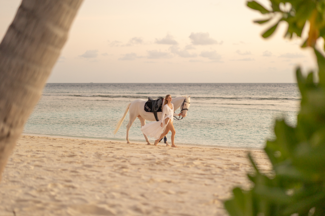 最不可思议的是,这岛上还能骑马,马场是马尔代夫独一份的,一共有十几匹骏马,主要营业的是两匹明星马,在马代的沙滩上策马奔腾,超级难得的体验,发几张大片绝对能火爆朋友圈。
