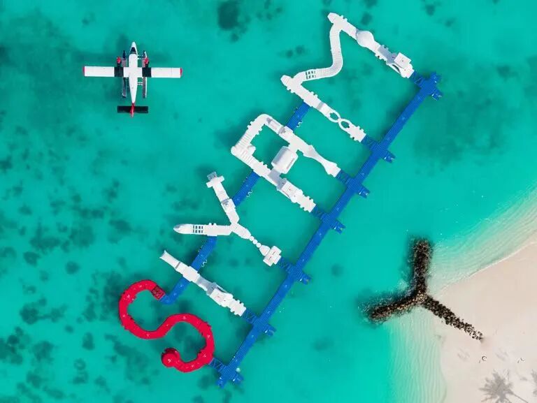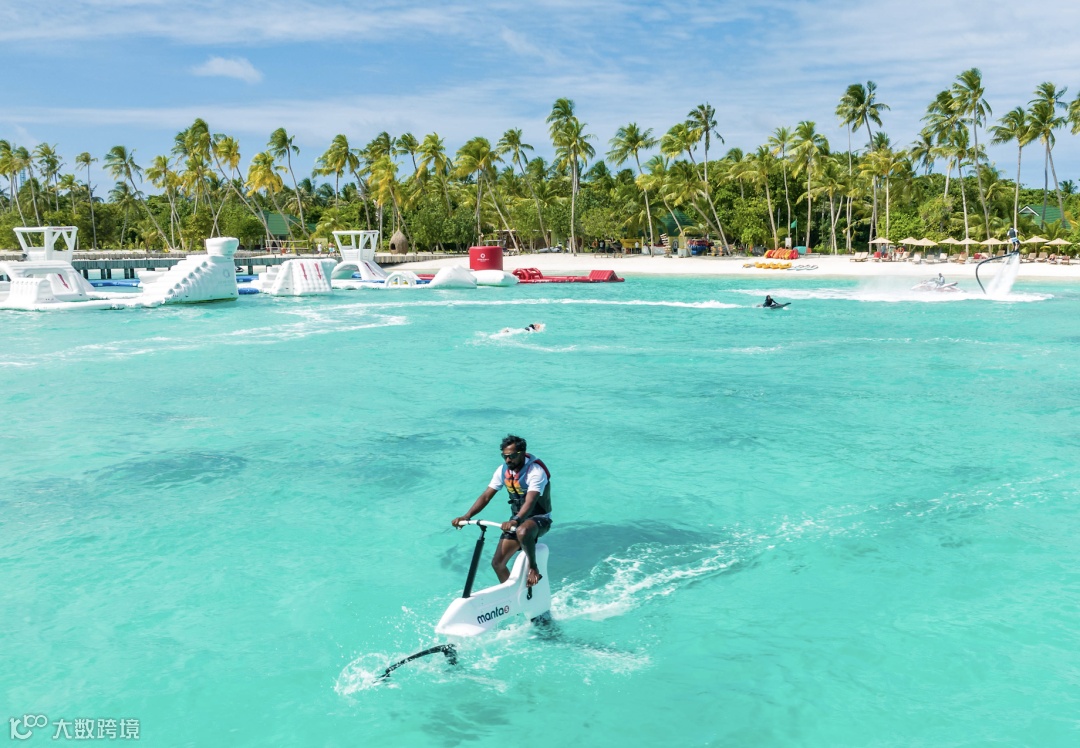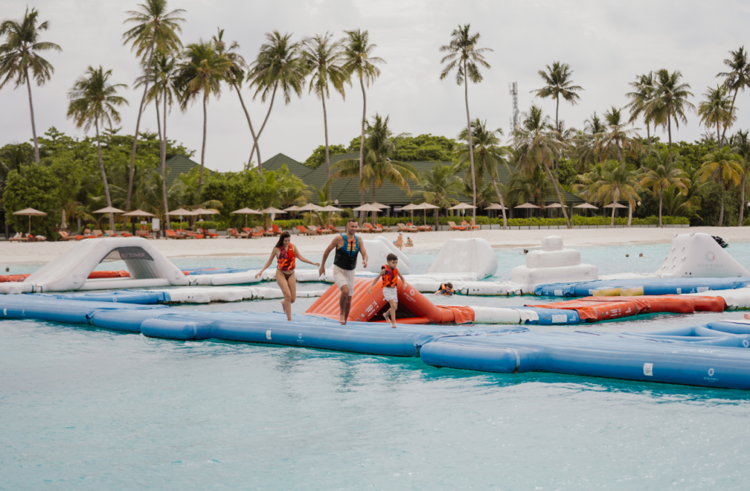 先来说说岛中央漂浮着马尔代夫最大的酷漂水上乐园,这座2580平的巨型海上乐园是由欧洲户外体育公园设计工作室-Wibit sport亲自操刀,大小朋友都可以无限次玩。