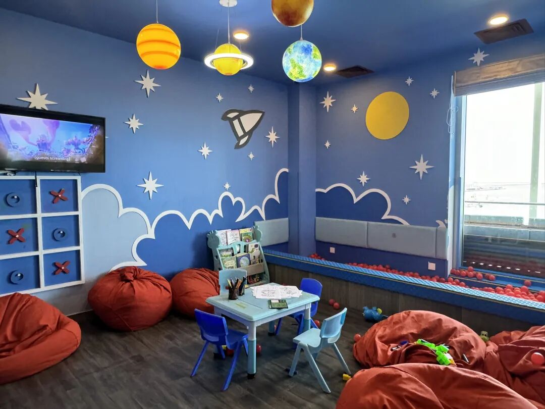 儿童中心对4-12岁的小朋友可以免费托管,4岁以下则需要家长陪同或babysitter。这点太加分了,爸妈可以解放双手去度假,娃也玩得不亦乐乎。