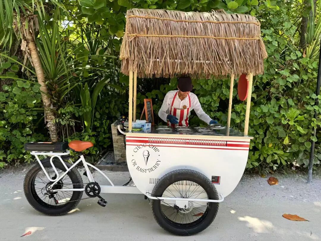 需要提醒一下,巴士不能开上栈桥,直接停在栈桥口,住水屋的客人需要从栈桥自行回到房间。也可以选择租辆自行车骑(12美金一天)。