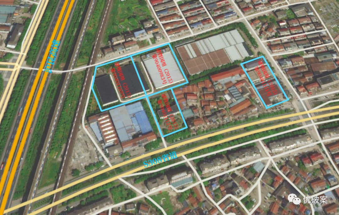 四宗土地所在区域、土地面积及相关地上建筑物情况图及数据明细如下: