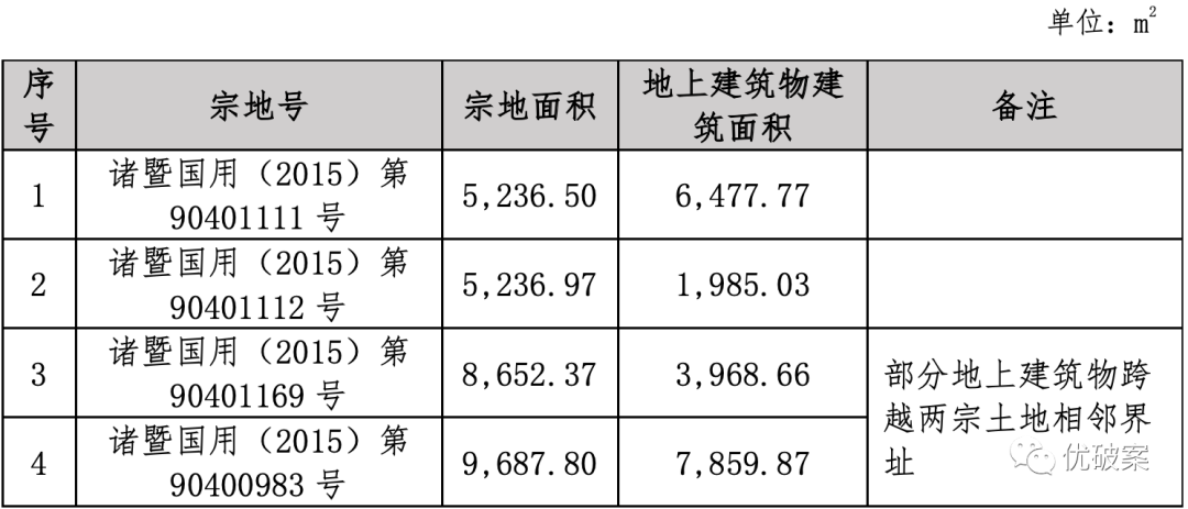 全越龙公司名下有四宗位于诸暨市大唐街道开元东路的工业用地使用权及地上建筑物,其中工业用地使用权终止日期均为2051年3月28日,地上建筑物均未办理产权登记。