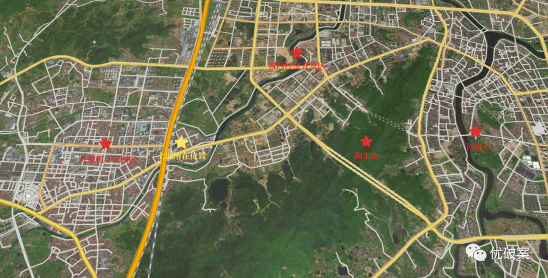 四宗土地位于诸暨市大唐镇,大唐镇是省级中心镇,是中国袜业之乡乃至全球最大的袜子生产基地,是一个以袜业生产、设计和销售为特色的经济强镇。四宗土地所在的大唐镇工业园区紧邻城西经济开发区,位于诸暨主城区西部,与主城区之间仅隔陶朱山。园区以现代商贸和智慧制造为主体,涵盖电子商务、智慧制造、设计研发、文化创意、休闲旅游、总部办公、会议展览等产业。