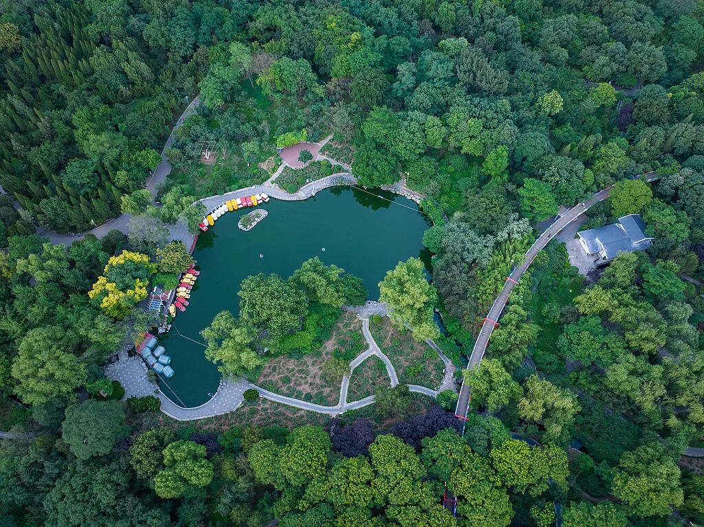 千佛山山脚附近不到千米的位置,泉城公园不仅是公园,400余种植物、13个不同主题的园区,像极了一座庞大的植物园,步入其中,好似现实版“绿野仙踪”,穿过林间廊道,鲜花垂荫,浓郁的绿遮天蔽日,几乎一年四季鲜花不断,特别是覆满绿藻的“抹茶湖”,亮眼治愈的绿色足以让人流连忘返。