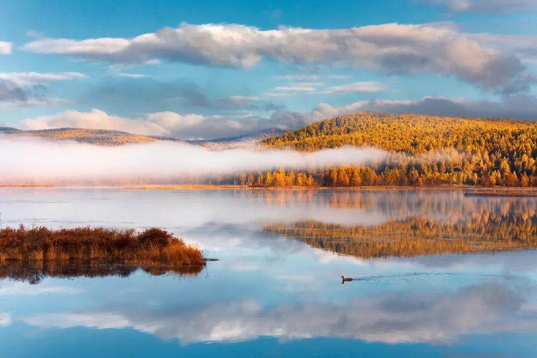 常年奔流不息的不冻河滋润着莽莽林原,金黄色的白桦林和蓝宝石般的湖水交相辉映,偶尔可见精灵般的小鹿在林间穿梭,浓郁的色彩和自然相遇,仿佛置身于油画世界,将北国秋日的绚烂尽数汇聚于此。