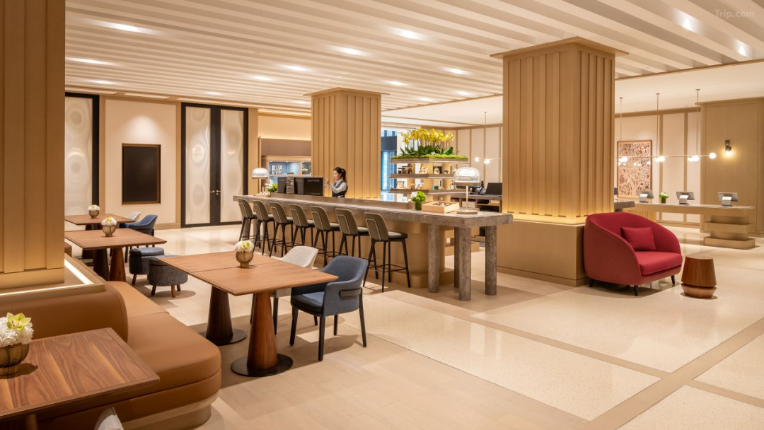 先说虹桥机场香格里拉酒店,有91间客房,客房起步就是豪华阁,所有房型均可享有豪华阁礼遇,包括豪华阁贵宾廊自助早餐+每日下午茶、傍晚鸡尾酒及小食+全天候咖啡、茶、软饮等。能把高奢酒店直接开进机场航站楼的屈指可数,更是少见的“全客房豪华阁礼遇”的高奢酒店。