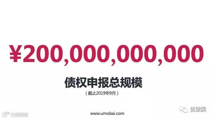 发布会现场演讲时引用的2019年年初债权申报总规模金额为1000亿,小编特此更新该数据至2019年9月,已突破2000亿大关。