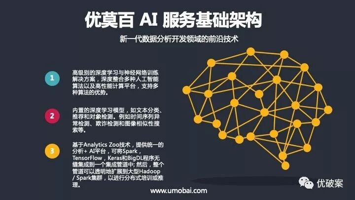 优莫百一直致力于人工智能、物联网方向的研发与探索。在优破案系统3.0中,AI服务基础架构能更好的支持智慧无限这个大主题。