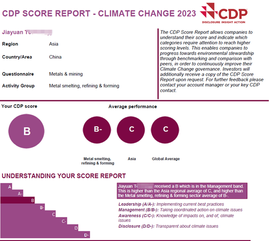 近日,全球环境信息披露中心(Carbon Disclosure Project,简称CDP)公布了2023年度评级结果 。