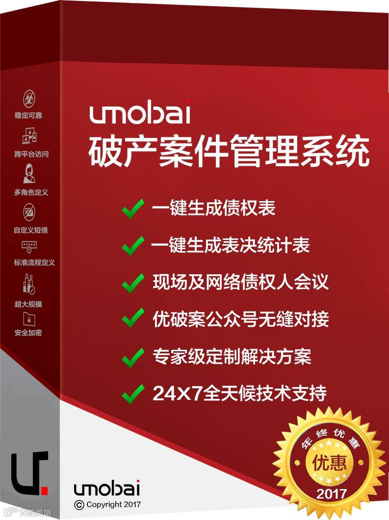 Umobai破产案件系统上线三年来已为无数家破产管理人提供优质可靠的服务,帮助管理人轻松应对债权申报和审查的各种难题,并为多起超大规模债权人会议提供专家级解决方案。大数据显示截至2017年11月末,通过我们系统管理的债权金额已超过三百亿。