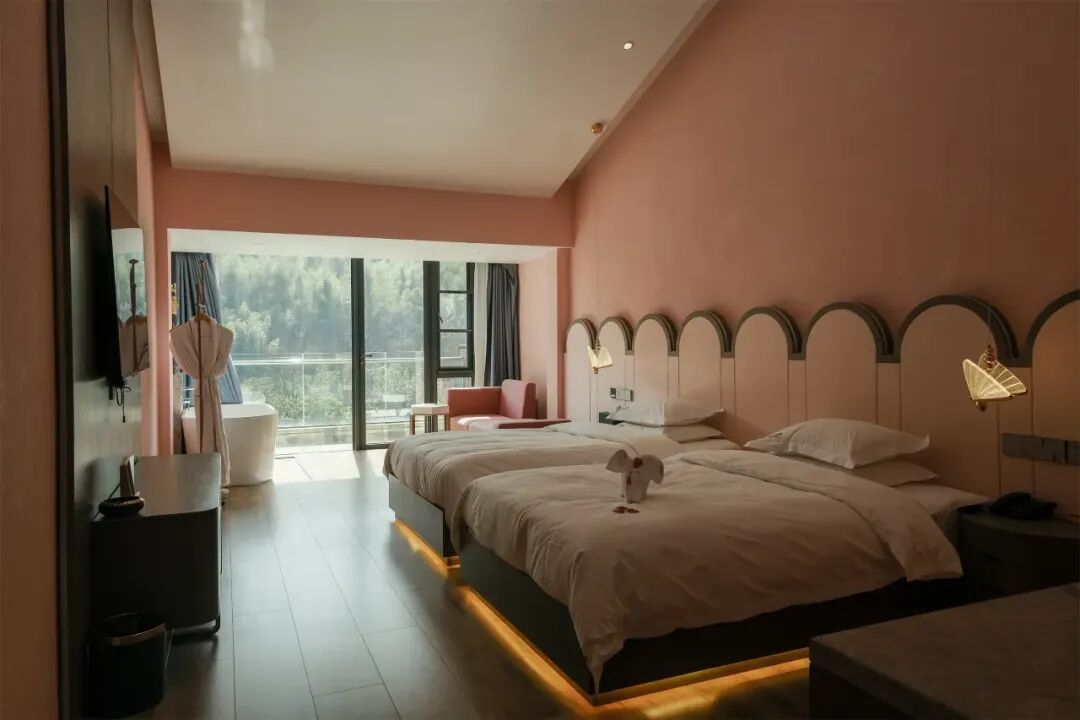 这家铂尔曼是神仙居今年新开的五钻酒店,开业首促500+即可入住,还含行政礼遇!酒店前往神仙居游客换乘中心、神仙氧吧小镇、《寻仙记》森林夜游实景演出中心,都步行5-600米可达,到玩水胜地淡竹锦鲤潭车程约半小时。