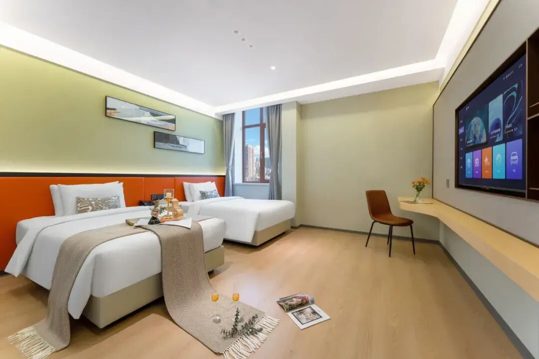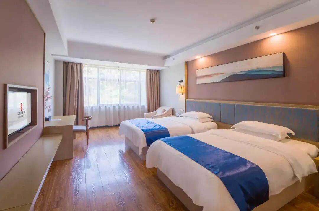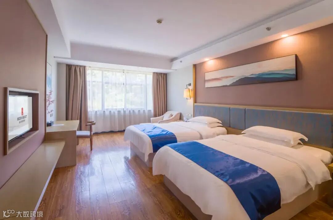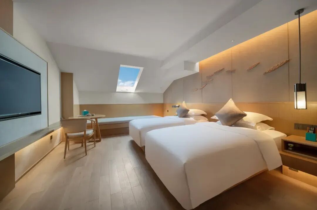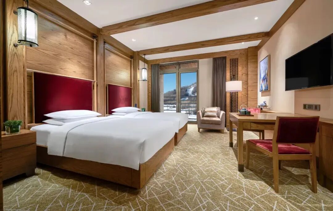 套餐给到的是高级林景双床房,面积42平,日历房暑期价格1200+,套餐虽然暑期有加价100-300元,但也是非常划算的,相当于日历房的78折。