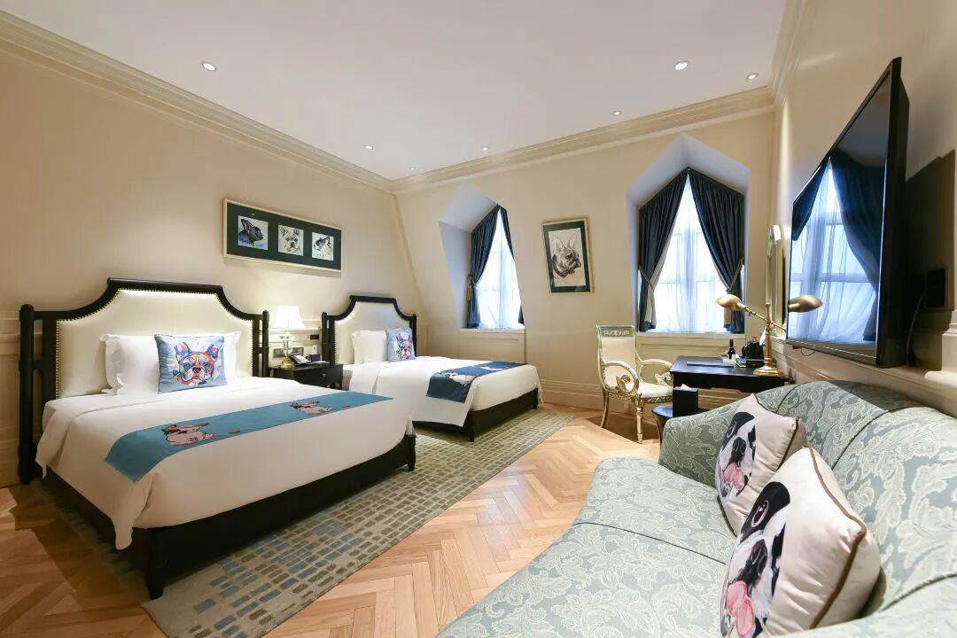 值得一提的是,酒店房型众多,价格也很不错,三位数就能住进城堡客房,40平起的伯爵星空·城堡双床房、欧式轻奢·国王大床房还有梦幻芭蕾·王后双床房价格都在900-1k之间,另外适合家庭选择的艾莎公主主题亲子房自带儿童帐篷、儿童滑梯、儿童玩偶和浴缸,价格也在1k左右。