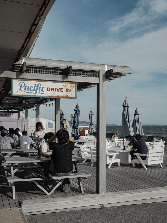 搭乘江之电,来到有着浓浓夏威夷风情的Pacific DRIVE-IN,点一份餐饮,坐在海边堤坝上,倾听海浪拍打沙滩奏响的交响乐,感受海风的温柔,观赏落日下的富士山,很是舒适。