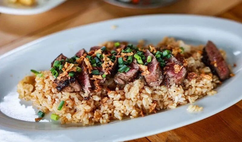 餐厅内的金字招牌——蒜香炒饭,和牛牛排鲜嫩多汁,米饭粒粒分明,蒜蓉恰到好处,每一口都是舌尖上的盛宴。
