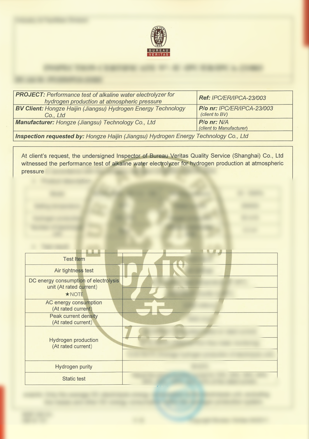 刘忠勇先生表示,宏泽海槿作为本土常压碱性水电解槽领航企业,本次通过国际第三方企业必维集团现场测试及认证,各项性能指标获得认可,我们为本土制氢企业感到自豪; 同时也期待未来,宏泽海槿的电解槽产品可以走向世界新能源装备的舞台,必维集团将继续为中国制氢产业持续输出价值与力量。
