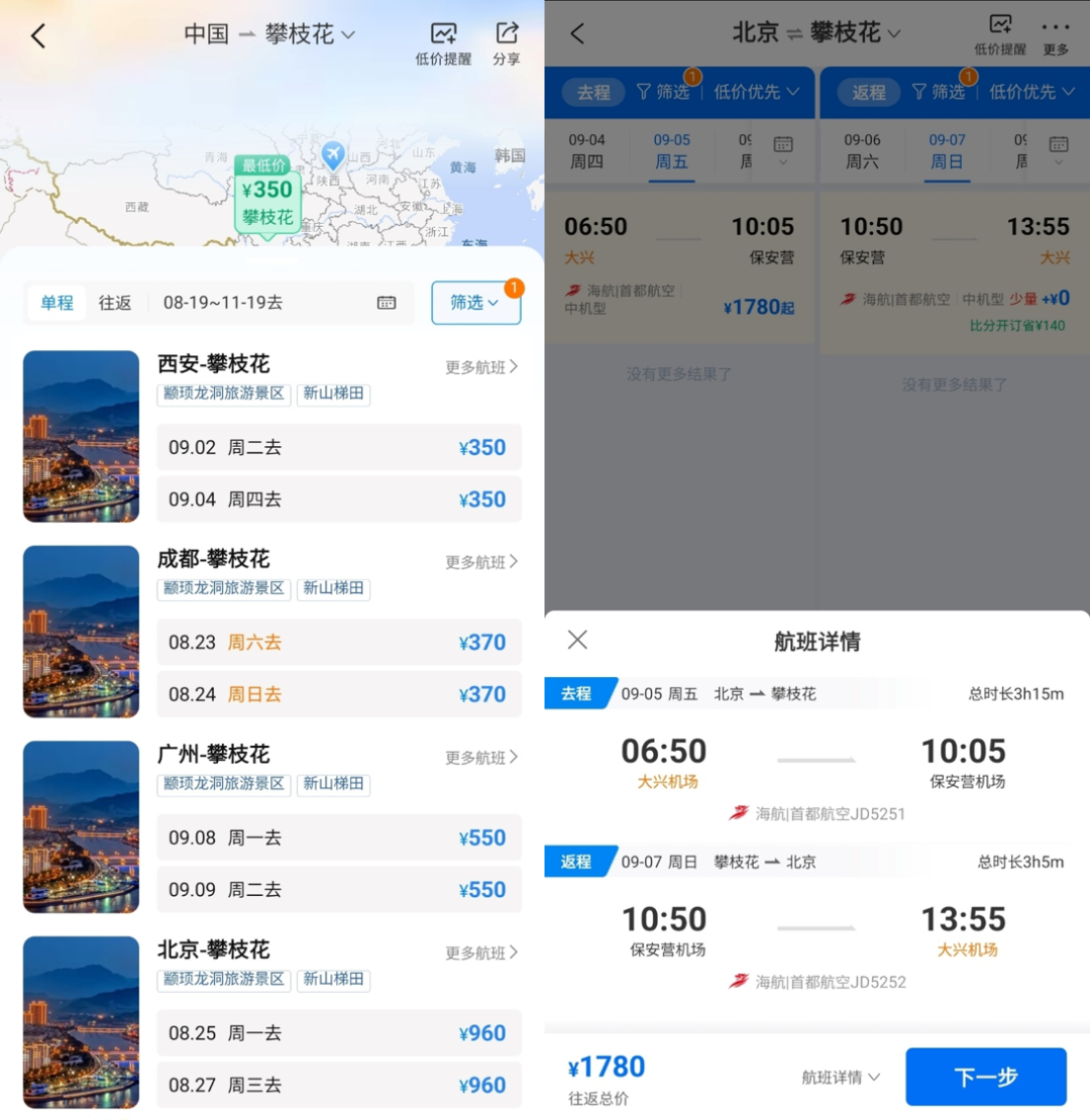 7月,北京大兴新开直飞攀枝花航线,3h左右的时间就能落地攀枝花保安营机场,给北京避暑提供了一项新的选择。