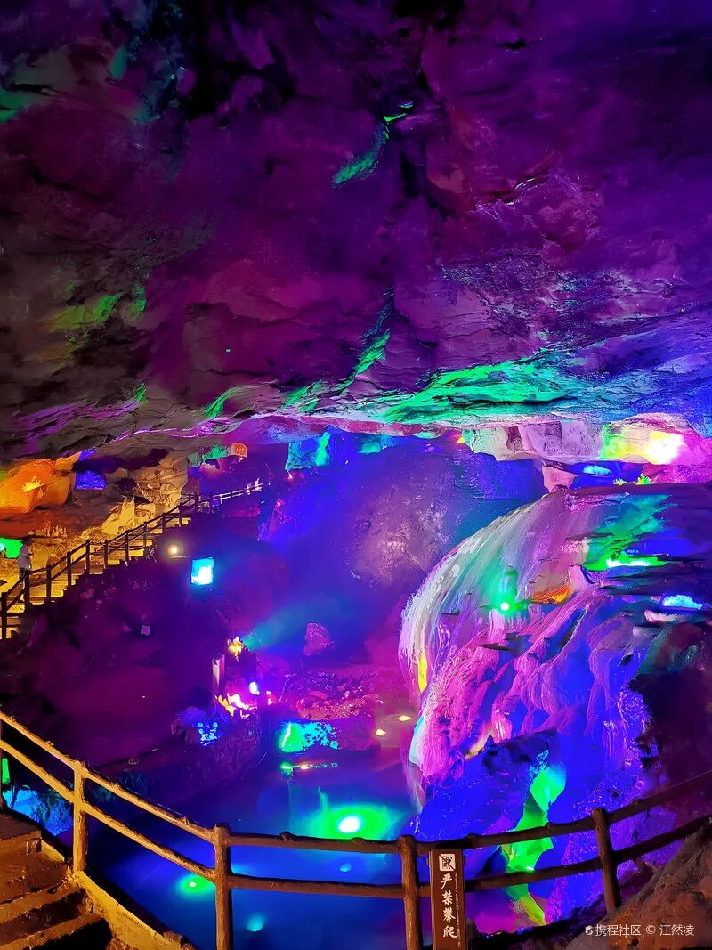 韭山洞整体分为虎踞龙盘、摘星揽月、峡谷幽深、清流碧影、玉溪泛舟五大部分,大大小小景点20余处,洞内流水长绵不绝,山石如器物一般,石刻、石像更是数不胜数,恍若仙境异域,美不胜收。
