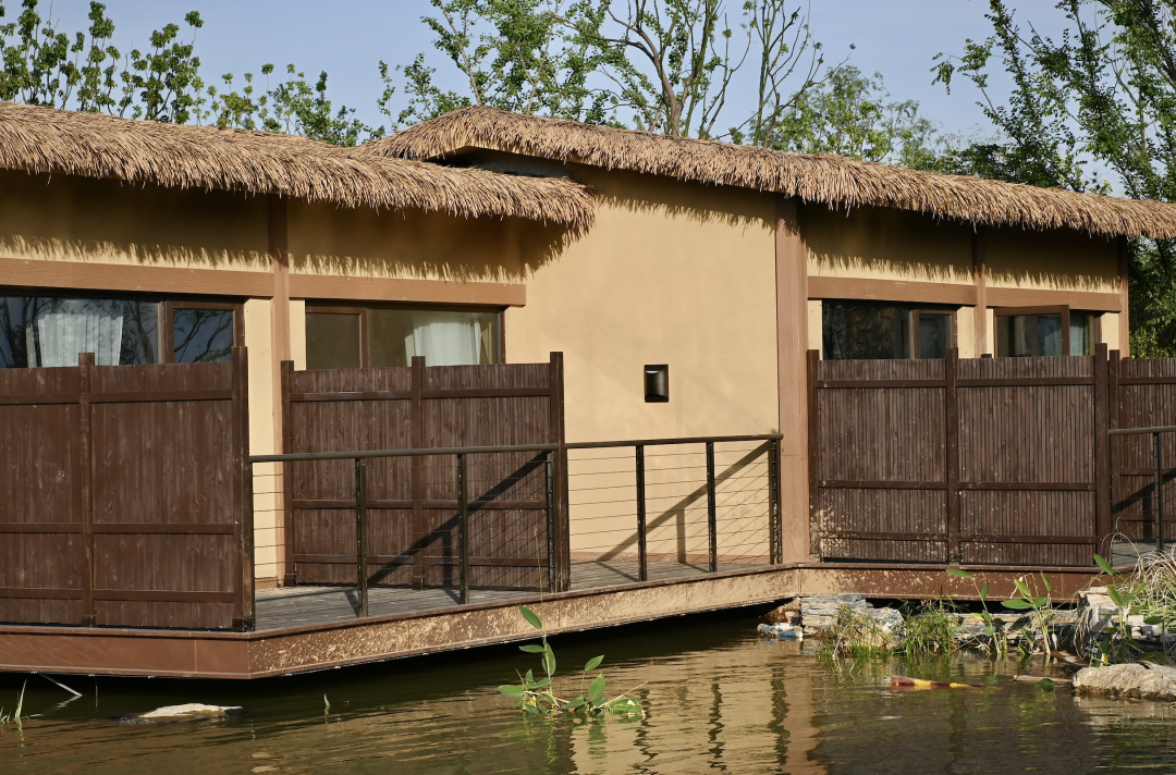 除了主楼之外,其他的度假小屋都是散落在水系湖边的,接驳车随叫随到。