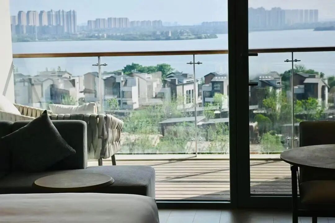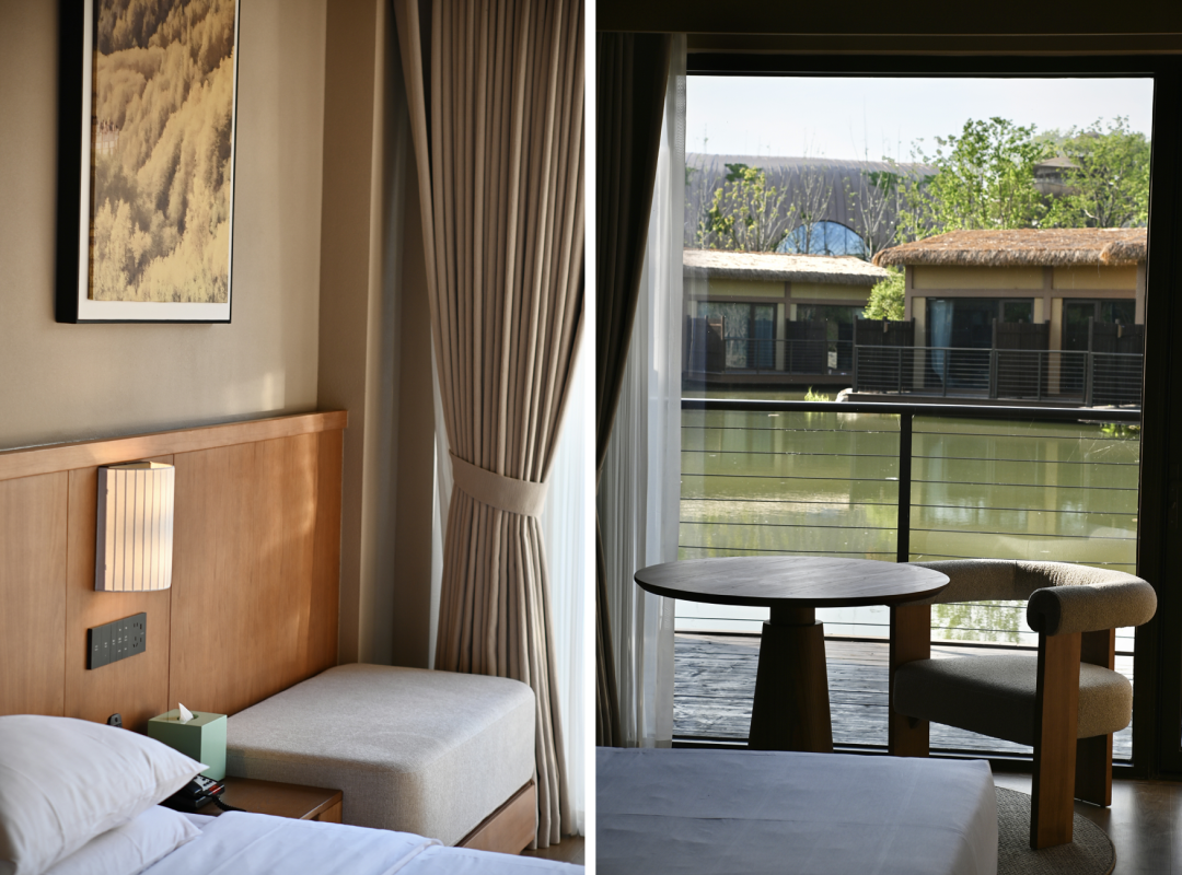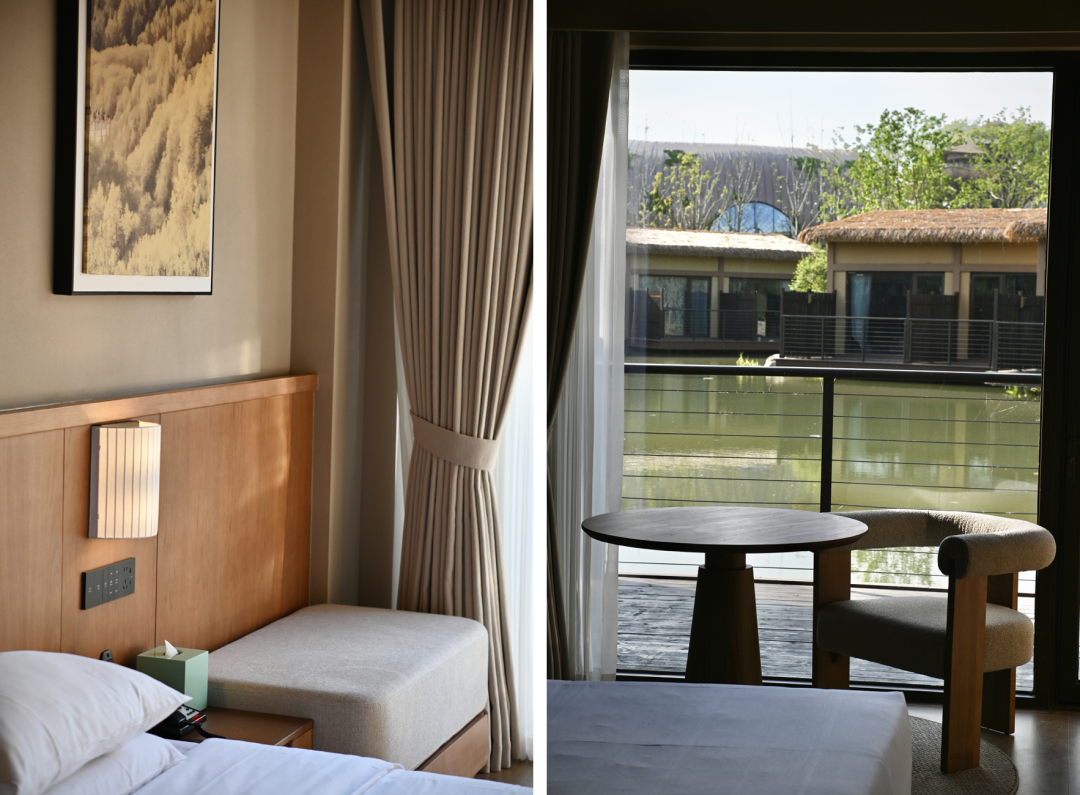 楼层更高一点是豪景房,床头是丝绒那种材质,视野也更加开阔一点。