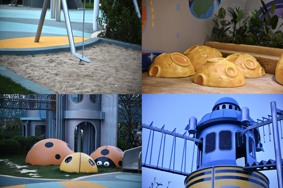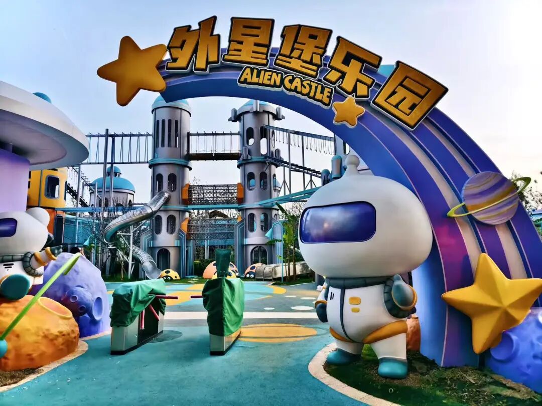 室外的外星堡乐园有各式各样的滑梯和攀爬架,在这儿还能玩VR体感对战。